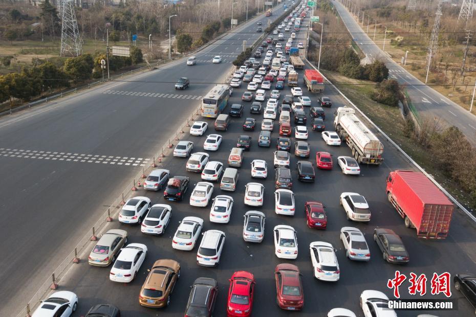 春节临近 南京高速公路现“钢铁长龙”