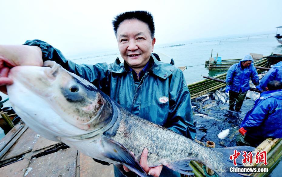 2月11日,春节临近,江西省鄱阳县渔民正抓紧起鱼,赶在春节到来之际卖个好价钱。当天,在被渔民誉为“鱼王”的胡正魁的帮助下,该县仅内珠湖渔民就销售野生新鲜鱼达11000多斤。渔民开心收起节前最后一网,欢欢喜喜准备和家人过个团员年。图为江西省鄱阳县素有“鱼王”美称的胡正魁开心捧起一条重达20多斤大头鱼,示意着渔民丰收的景象。卓忠伟 摄