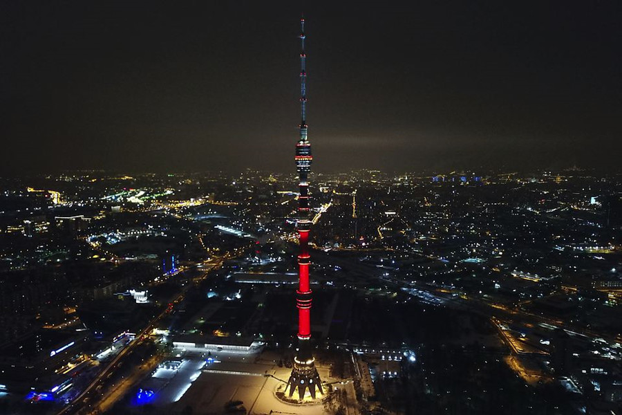 2月10日,位于莫斯科的奥斯坦金诺电视塔整晚点亮红色灯光,迎接中国春节的到来。春节临近,不仅在中国,俄罗斯各地也开始举行各种活动迎接即将到来的狗年春节。(国际在线专稿 编译:刘维靖)