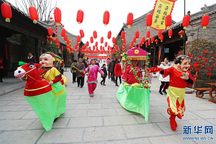 据了解,园区内的装饰和民俗表演均是“我们的节日”——2018开封·朱仙镇年文化系列活动中的一部分。