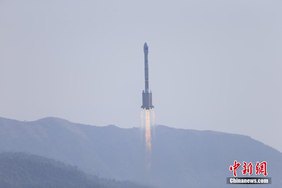 2018年2月12日13时03分,中国在西昌卫星发射中心用长征三号乙运载火箭(及远征一号上面级),以“一箭双星”方式成功发射第二十八、二十九颗北斗导航卫星。这两颗卫星属于中圆地球轨道卫星,是我国北斗三号工程第五、六颗组网卫星。 中新社发 赵昀 摄 图片来源:CNSPHOTO