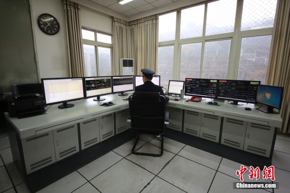 近日,重庆歌乐山“迷你”火车站的工作人员春运期间进行24小时的轮流值班。据悉,该火车站小站常驻职工仅有6人,只办理列车会让和越行,每日接发列车80对,其中动车高铁50对。图为火车站工作人员正在关注列车运行情况。 苏自刚 摄
