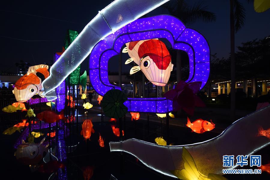 2月12日拍摄的锦鲤造型的彩灯。当日,春节彩灯展在香港文化中心露天广场举行,彩灯展以“锦鲤”为主题,展出90个色彩艳丽、形态万千的锦鲤造型彩灯,营造出浓浓的年味。新华社记者卢炳辉摄