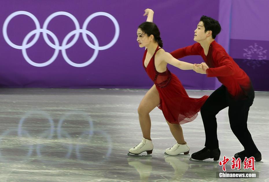 2月12日,美国队在平昌冬奥会江陵冰上体育场举行的花样滑冰团体赛中获得铜牌。图为美国队选手在比赛中。 中新社记者 宋吉河 摄