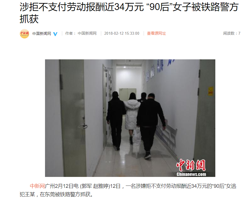 东莞23岁女子克扣员工34万工资被抓