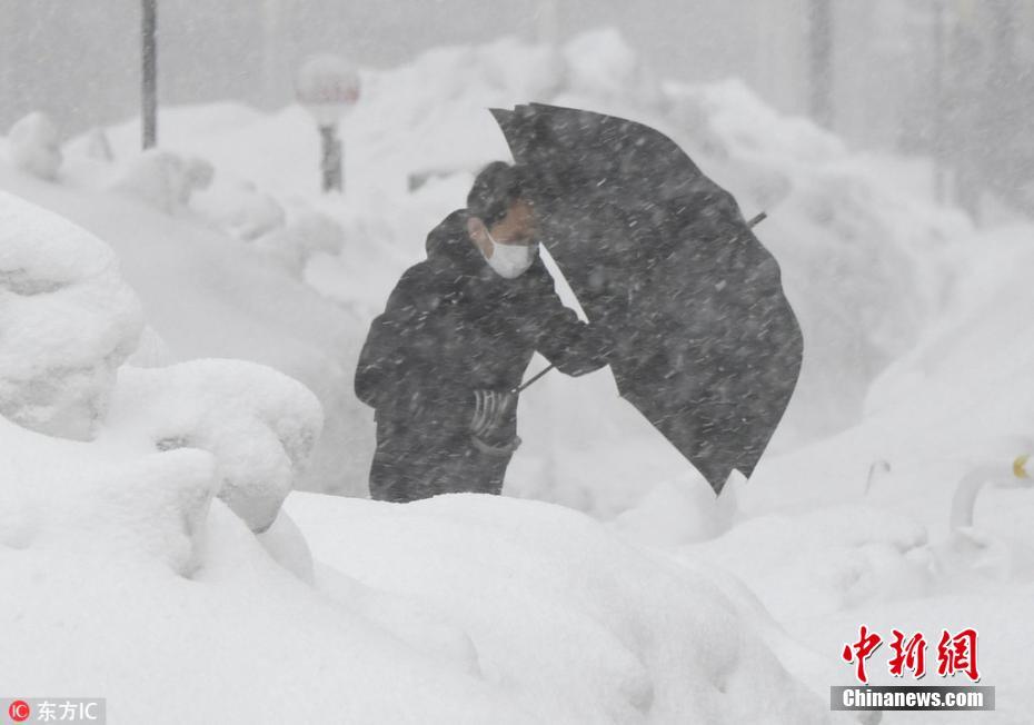 日本福井县遭暴雪袭击 积雪堆积半人高