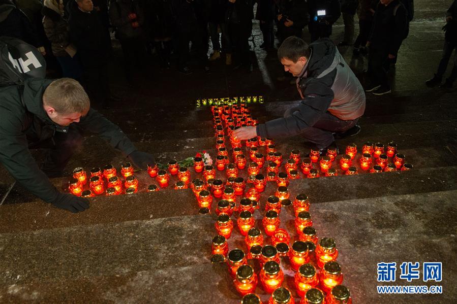 2月12日,在俄罗斯首都莫斯科,人们在失事客机遇难者悼念仪式上摆放蜡烛。