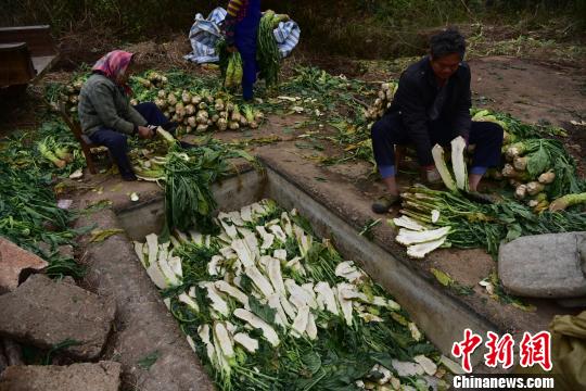 该农民一家一共收上了5000斤大头菜,已经将一个1.5米深的池子装满。 王以照 摄