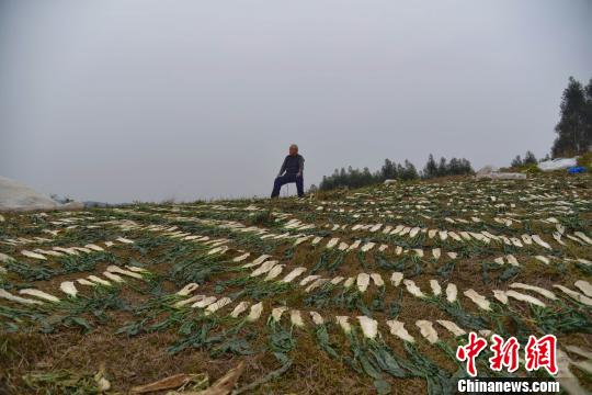 一名农民将大头菜铺好后,坐在一旁休息。 王以照 摄