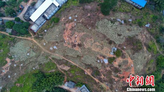 2月12日,在广西南宁市横县南乡镇陈塘村,农民们晾晒的大头菜铺满了一个山头。当地大头菜以爽脆、香嫩著称,每年的春节前夕,大头菜进入收割和制作的旺季,晾晒完成后,经过5个月的贮藏,大头菜会达到它的最佳口感,随后销往全国各地。