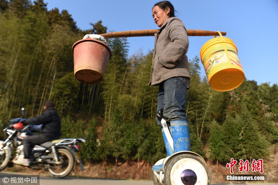 菜农大妈玩转平衡车 脚踏高科技去地里收菜