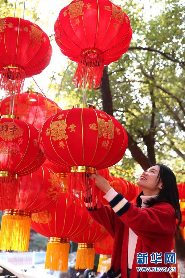2月13日,一名市民在江西省抚州市东乡区选购红灯笼。春节将至,各地红红火火,一派喜气景象。新华社发(何江华 摄)