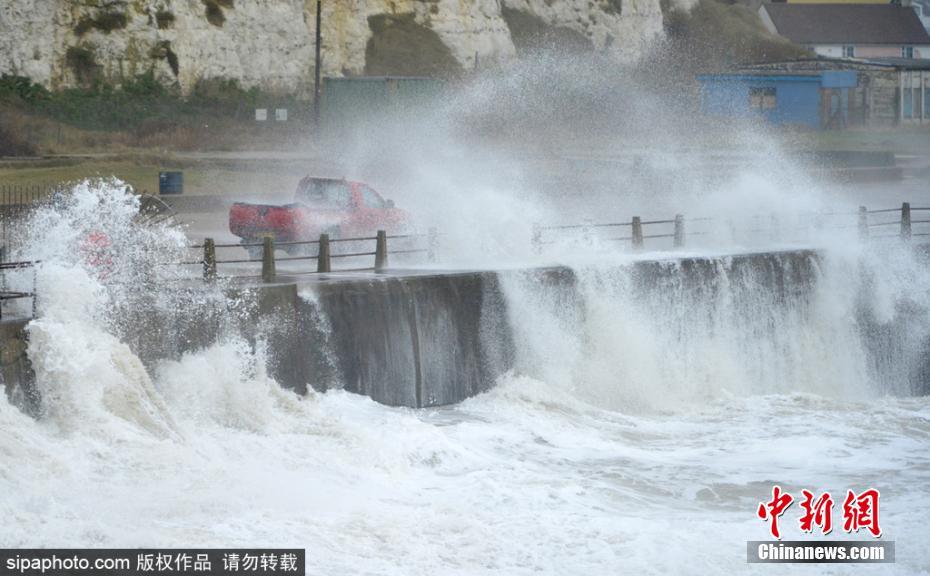 当地时间2月13日,大雨强风袭击英国南部东萨塞克斯郡,在纽黑文港卷起巨浪,场面震撼。 图片来源:SipaPhoto