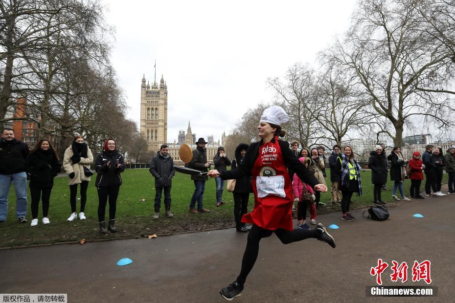 英国议会年度端煎饼赛跑 众议员狂奔炫技