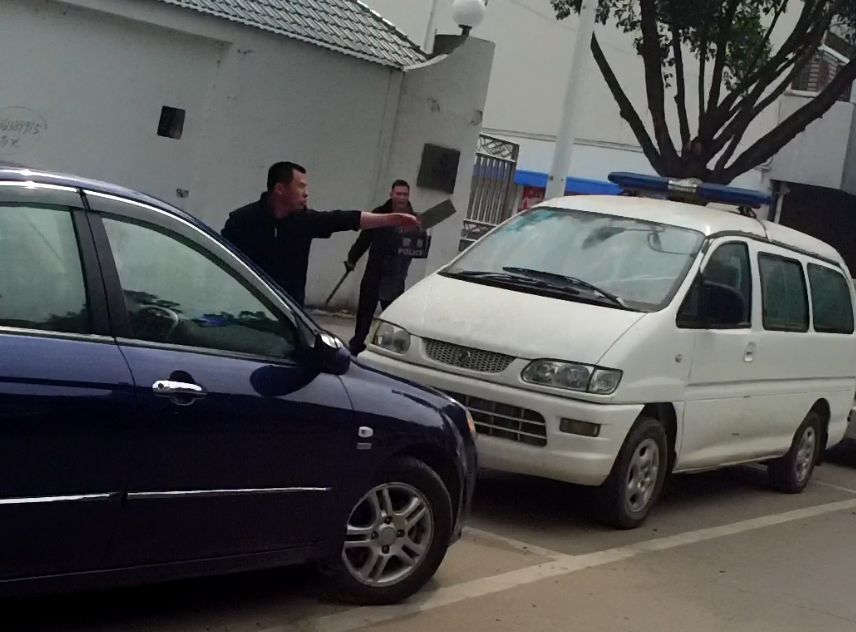 警车到达现场还未停稳,持刀男子先是刀砍警车,后对出警警察挥刀进行攻击。图为歹徒向警察挥刀、叫嚣。