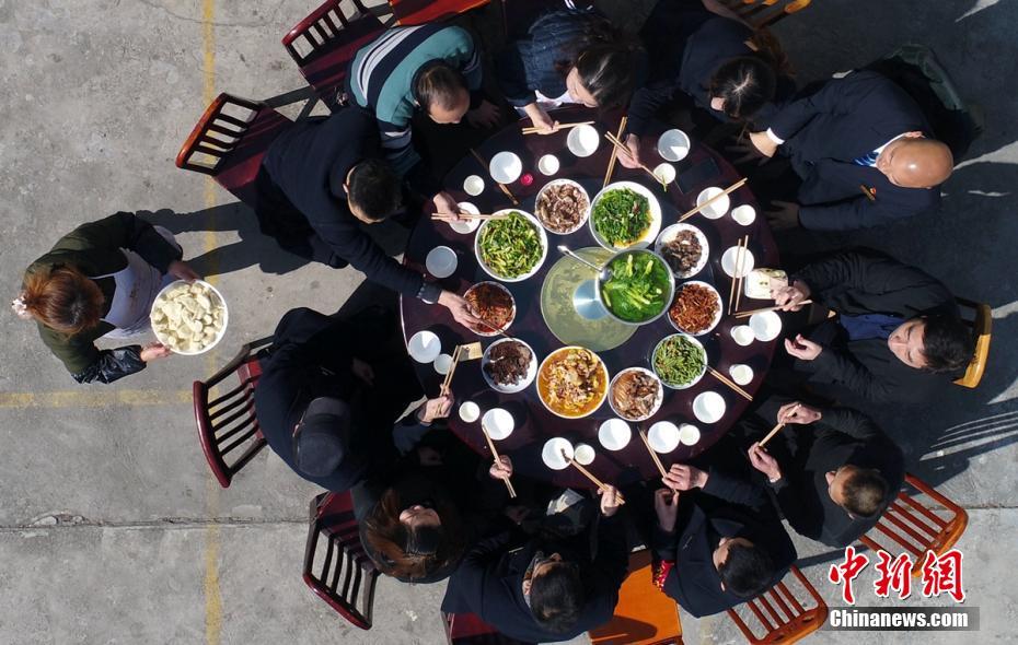 经过2个多小时的忙碌,一桌丰盛的团年饭做好了,大家围坐一起边吃边聊,都说这是提前过年三十了。“提前祝不能回家,坚守岗位的同事们新年快乐!”越西火车站站长古波端起杯子,大家的脸上洋溢着幸福的笑容,让这个在大山深处沉寂的小站顿时充满了浓浓的年味。刘忠俊 摄