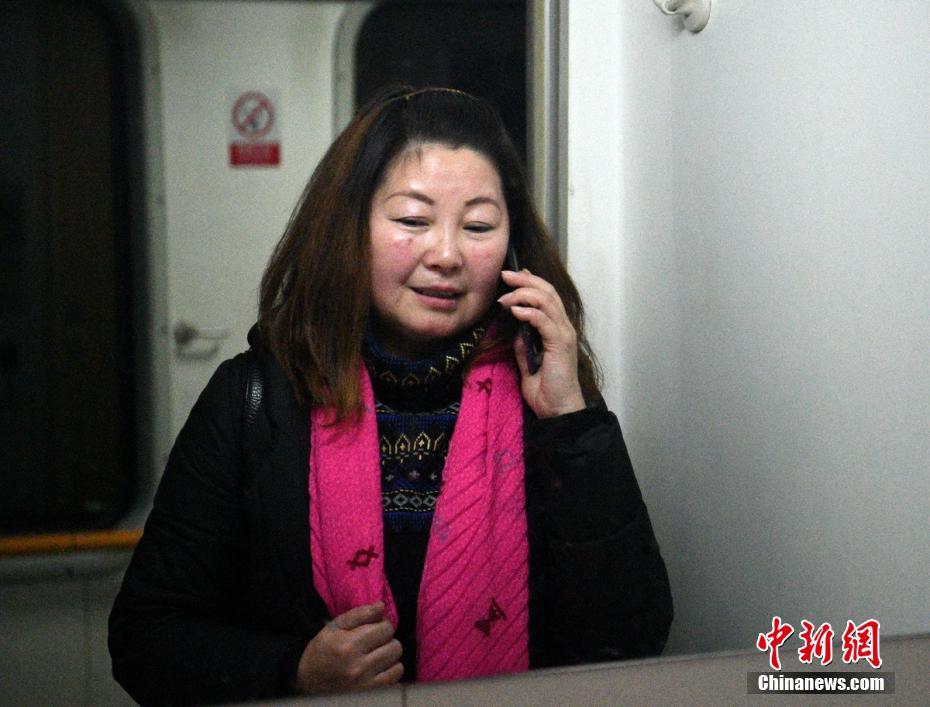 火车上李洪梅突然接到儿子电话,告知春节也不能回家过年了。刘忠俊 摄