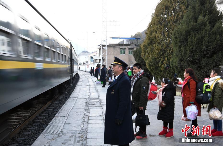 小站唯一停车的慢车进站,莫建军正在组织乘客排队等候登车。刘忠俊 摄