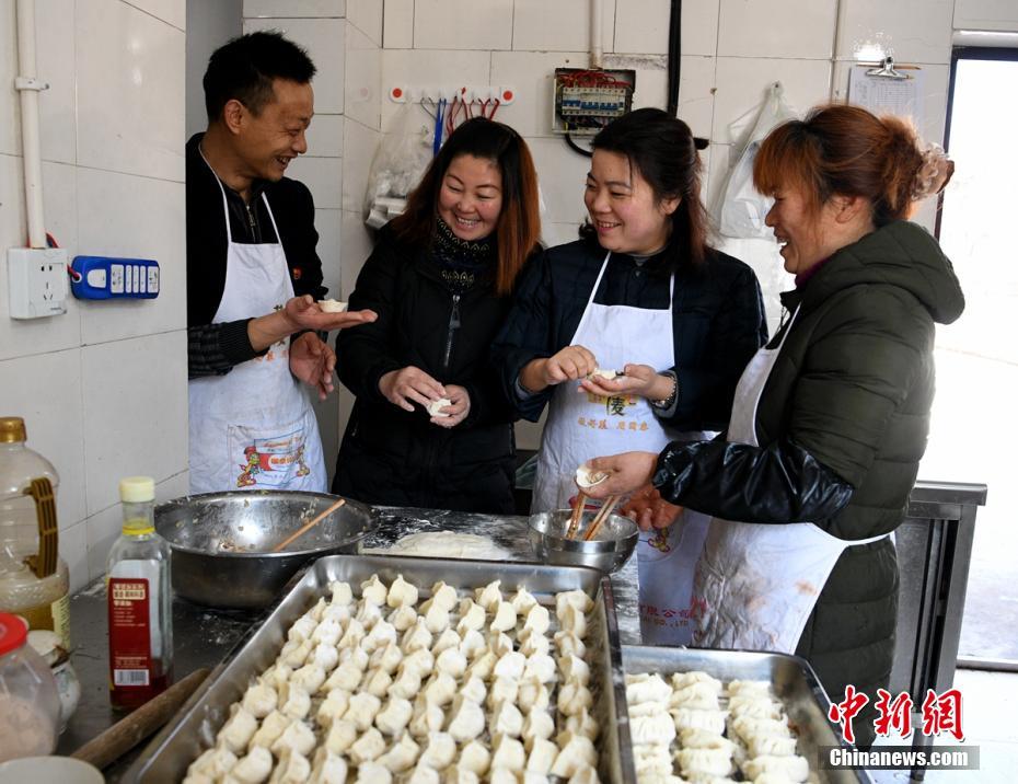 李洪梅、王大姐等一起在伙食团包饺子。刘忠俊 摄