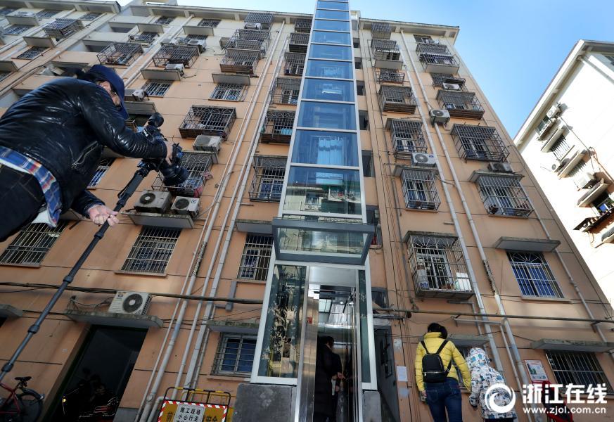 2月13日,杭州金秋花园8幢3单元,江干区第一座老小区加装电梯开始启用。据江干区住建局工作人员介绍,目前全区已经有28个单元楼申请加装电梯。春节前,华家池社区还将有3台加装电梯进行主体施工,到年底全区将有90台加装电梯将投入使用。浙江在线记者 林云龙 摄 图片来源:浙江在线