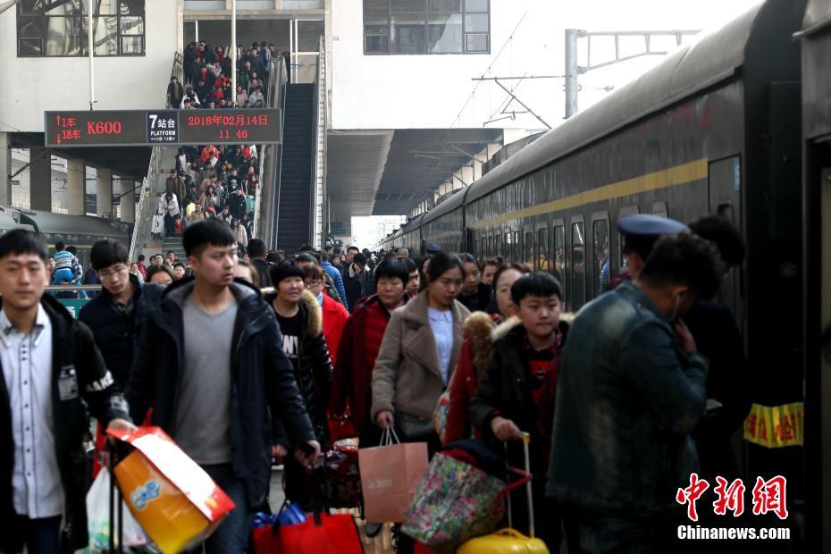 2月14日,春节临近,河南郑州火车站内人头攒动,迎来客流高峰。 中新社记者 王中举 摄