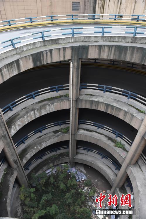 2月14日,重庆江北一小区的魔幻“旋转”公路,吸引市民前往驾车体验。据了解,该公路是连接小区的必经之路,市民驾车回家需从主干道连续旋转4个360度大圈才能进入小区。 周毅 摄