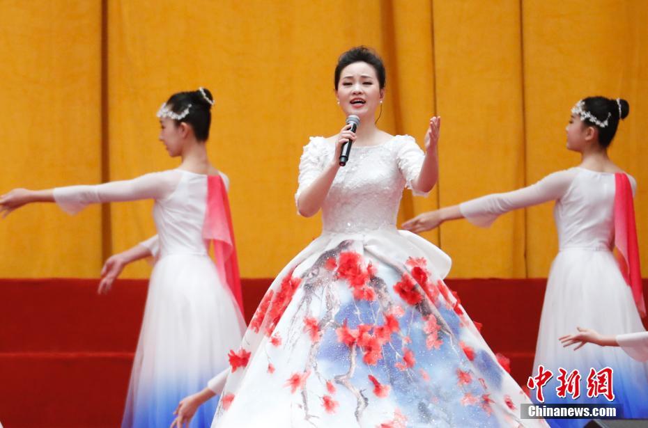 2月14日,中共中央、国务院在人民大会堂举行2018年春节团拜会。中共中央总书记、国家主席、中央军委主席习近平发表重要讲话,代表党中央、国务院,向全国各族人民,向香港特别行政区同胞、澳门特别行政区同胞、台湾同胞和海外侨胞拜年。党和国家领导人李克强、张德江、俞正声、张高丽、栗战书、汪洋、王沪宁、赵乐际、韩正等出席团拜会,李克强主持。图为文艺表演。 中新社记者 杜洋 摄