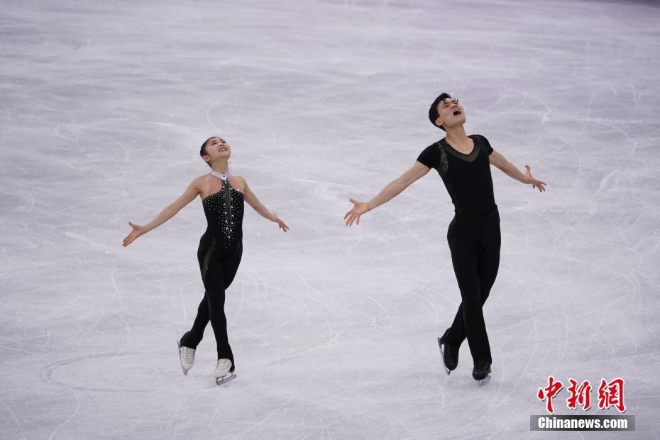 当地时间2月15日,2018平昌冬奥会花样滑冰双人滑自由滑的比赛中,中国组合隋文静/韩聪全新演绎经典曲目《图兰朵》,获得153.08分,并以总分235.47摘得银牌,两人距获得冠军的德国组合萨维申科/马索特仅差0.43分。图为中国组合隋文静/韩聪在比赛中。中新社记者 崔楠 摄