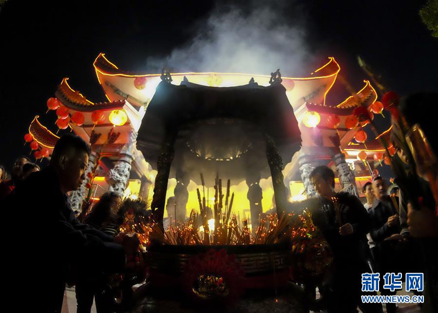 2月16日,在美国洛杉矶,人们在天后宫上香祈福。当日是中国农历正月初一,洛杉矶华人来到中国城天后宫上香祈福,迎接新年。 新华社发(赵汉荣摄)