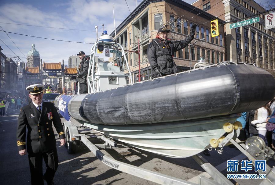 2月18日,在加拿大温哥华,加拿大海军参加春节大游行。当日,温哥华唐人街举行第45届春节大游行,数千人的表演队伍吸引了约十万民众到场观看。 新华社发(梁森摄)
