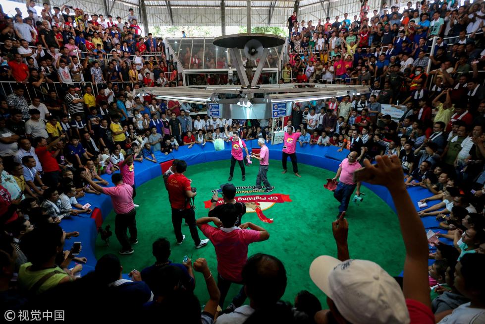 当地时间2018年2月18日,泰国曼谷,民众观看斗鸡。本次斗鸡比赛奖金达100多万美元,为泰国史上最高。