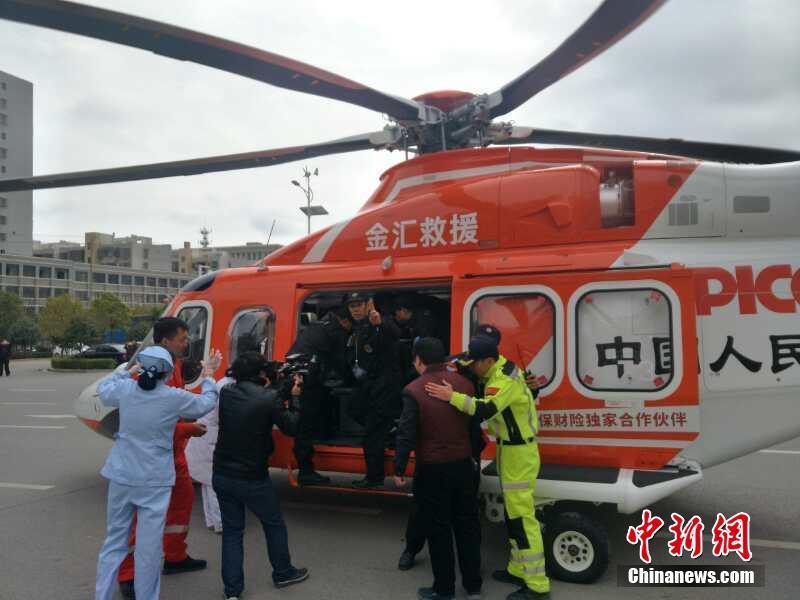 2月21日,直升机将在宁都县人民医院救治的数名重症伤员分别转移至赣州和南昌。 李斌 摄