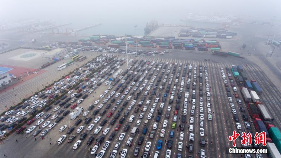 2月22日,航拍海口市滨海大道绵延数公里的滞留车辆等待过海。连日来,琼州海峡受大雾天气影响屡次封航,又恰逢春节自驾旅游车辆返程高峰,导致海口各港口出现大量滞留车辆,截至22日13时,海口秀英港、新海港、南港等待过海车辆共计11281辆。 中新社记者 骆云飞 摄