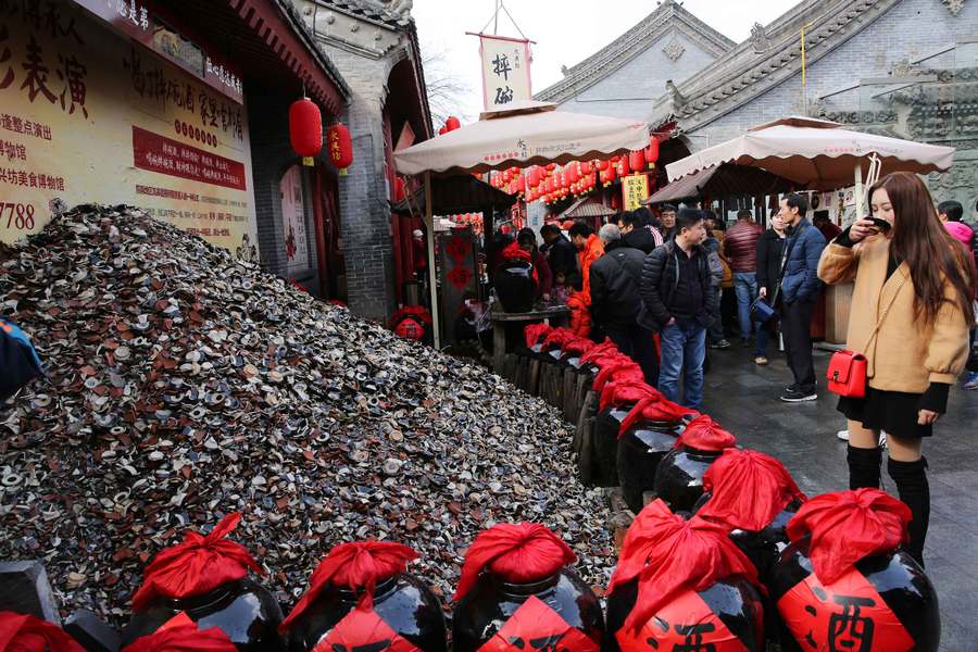 景区5元摔碗酒求吉利 西安城墙下碎碗堆积如山