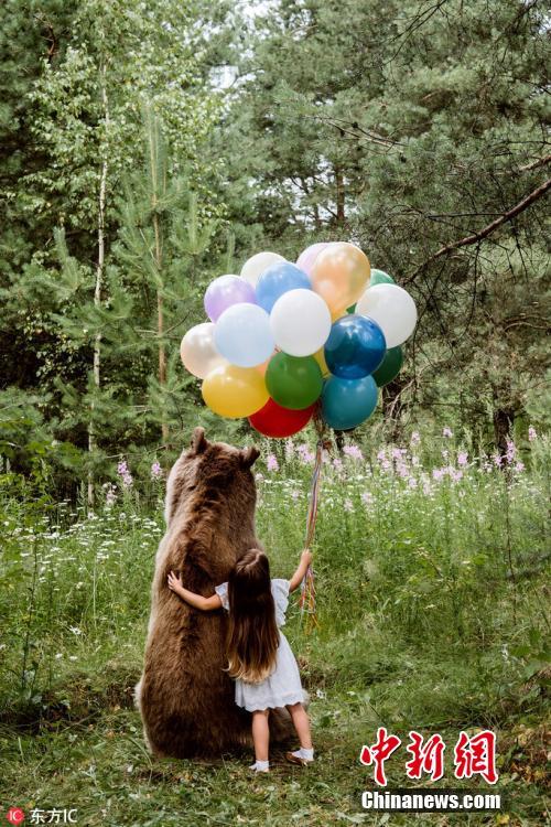 2018年2月23日报道(具体拍摄时间不详),对大多数孩子而言,有一只泰迪熊玩偶是再幸福不过的事了,陪玩又陪睡绝对是称得上绝佳玩伴,但如果把玩偶换成一头真正的大棕熊,你能想到会发生什么吗?摄影师Olga Barantseva用一组图片给了我们答案。Olga来自俄罗斯,他邀请了一些小萌娃,来到莫斯科一处森林,在这里,他们与一头体重50英石(317公斤)的大棕熊亲密接触。图片中,呆萌的小娃娃们或趴在棕熊背上玩耍,或手拿望远镜与棕熊一起遥望远方,又或手拎花篮,献花给棕熊,场面格外暖心。图片来源:东方IC