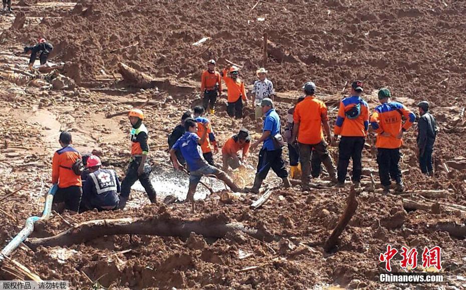 印尼爪哇岛发生山体滑坡 导致数人失踪
