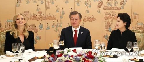伊万卡与文在寅共用晚餐 一身黑色长裙高贵典雅