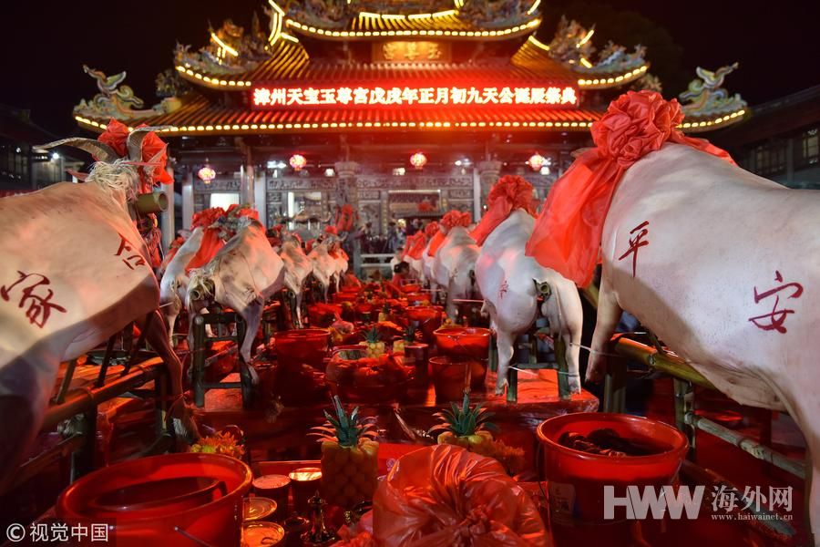 福建漳州拜天公典礼:祭品铺满广场