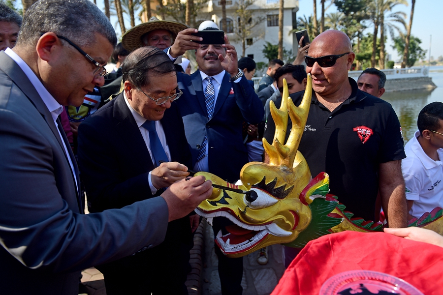“欢乐春节”尼罗河龙舟大赛在埃及开罗尼罗河畔举行。(图片来源:新华社)