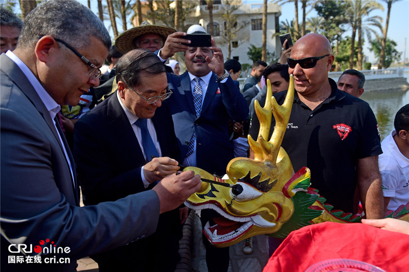 中国驻埃及文化参赞石岳文、吉萨省秘书长穆罕默德·巴德尔和埃及武术协会主席穆罕默德·阿舒尔出席活动并为各国参赛队员加油。宋爱国大使为龙首点睛。