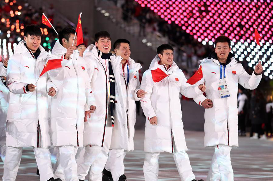 2月25日,中国代表团成员在闭幕式上入场。