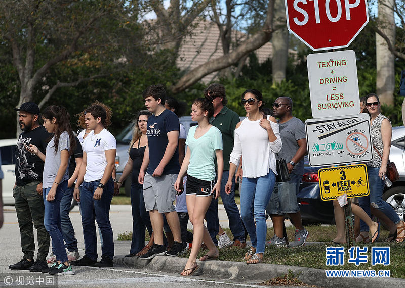 美国佛州枪击案中学复课 学生排队返校“情绪复杂”