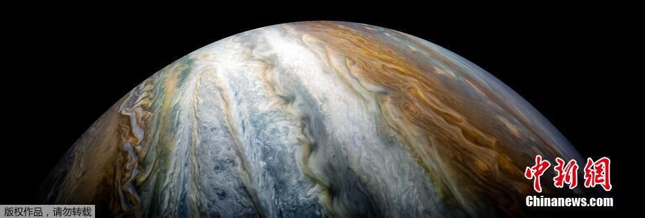图为木星北极附近的南温带,多彩的气旋让巨大的木星看起来充满了神秘感。