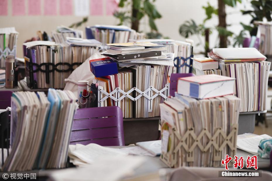 高考百日倒计时学子备战 教室如同图书馆