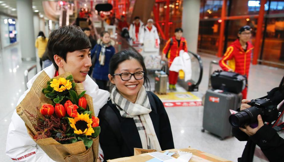 中国短道速滑队运动员归国 “粉丝”争相合影
