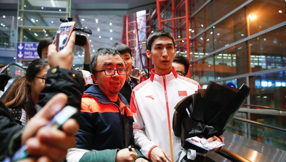 中国短道速滑队运动员归国 “粉丝”争相合影