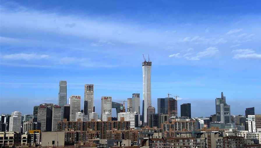 这是蓝天白云下的北京CBD(2018年1月22日摄)。新华社记者罗晓光 摄