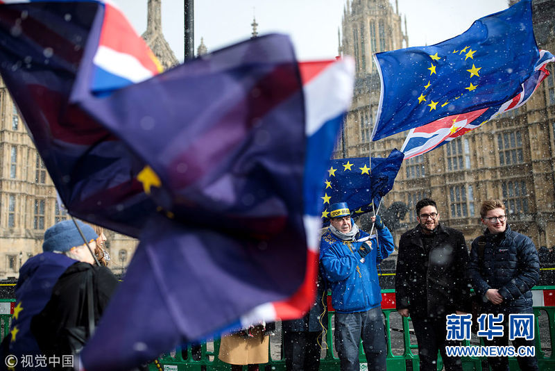 2月26日,英国伦敦,示威者在议会大厦外抗议“脱欧”。(图片来源:视觉中国)
