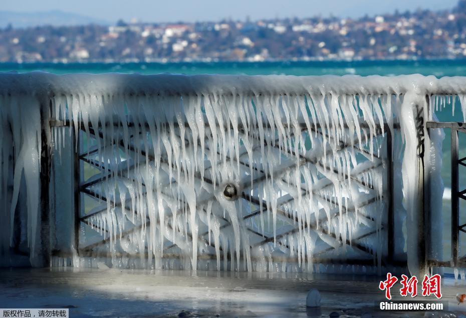 瑞士日内瓦湖畔的冰封美景。