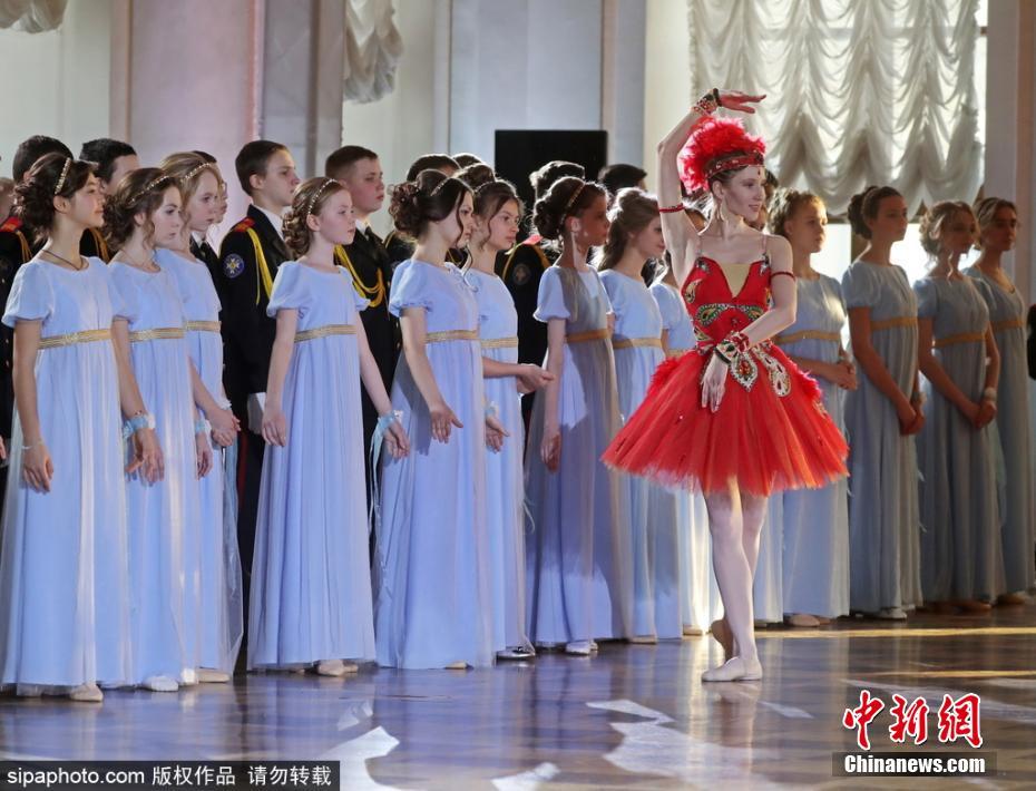 莫斯科学校举办少年军官舞会 俊男美女翩翩起舞
